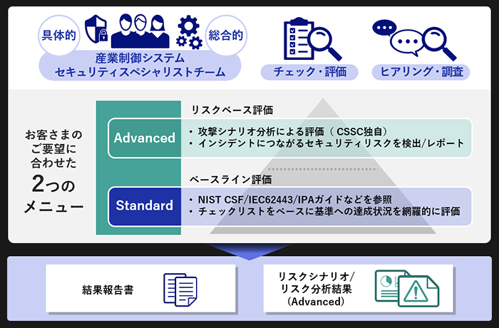 - Advanced:産業制御システムセキュリティ技術に精通したCSSC独自の攻撃シナリオにより、リスクを分析・評価
