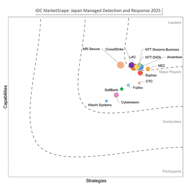 NECは、International Data Corporation(IDC)が発刊したレポート「IDC MarketScape: Japan Managed Detection and Response Services 2025 Vendor Assessment」(IDC # JPJ53015825 ,2025年11月)において、リーダーの1社として評価されました。