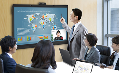 リモート会議の実演デモ 今のオフィスには、リアルとリモートが融合したコミュニケーションハブとしての役割が求められています。リアルな場での電子ホワイトボード活用事例として、分析データを活用したミーティングイメージのご紹介と、リモートでもリアル感を演出する高画質カメラや指向性の広いマイク・スピーカを一体化した電子ホワイトボード「BrainBoard WDシリーズ」を使ったリモート会議の実演デモを行います。 |
