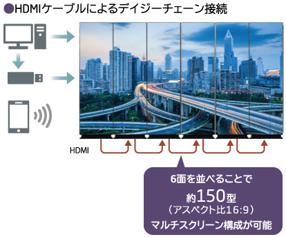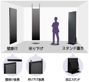 トール&スリムなデザインと高輝度・大画面表示により、アイキャッチ効果の高い情報発信が可能です。