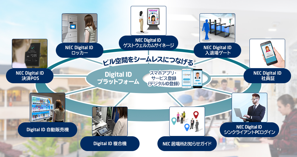 NECのDigital IDで実現するスマートビルディングです。
