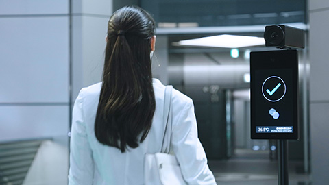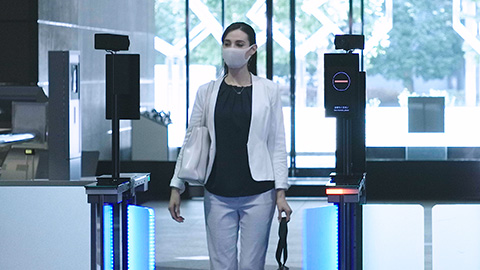 鍵やIDカード、パスワードは不要。スムーズに認証が可能です。ウォークスルー顔認証を導入すれば、立ち止まる必要もなくなります。また、タッチレスなので感染症の対策にも最適です。NECの顔認証では、マスク着用時でも高精度に認証することができます。