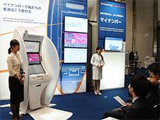 こうした取り組みのひとつとして、NECでは、「C&Cユーザーフォーラム & iEXPO 2015」において、マイナンバーカードを活用した、近未来の生活について紹介する展示デモ「マイナンバーで私たちの生活はこう変わる」を実施しました。これは、マイナンバーカードを活用することで、国民や行政、企業にとって、どのように便利な未来が描けるのかをわかりやすく示したものです。展示デモは、多数の来場者を集めるだけでなく、テレビのニュース番組に取り上げられるなど、大きな反響を呼びました。
