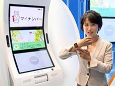 マイナンバーカードを活用した展示デモNECでは、マイナンバー制度の導入に合わせ、政府や地方公共団体向けにさまざまなソリューションの提供やインフラ整備に貢献してきました。さらに、基盤システムの構築のほか、マイナンバーカードの民間企業におけるビジネスでの利活用、将来的な官民連携の実現に向けて、様々な可能性を検討しその普及に向けた活動を推進しています。