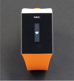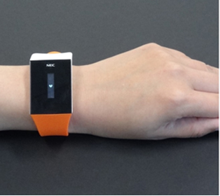 NECグループのデザイン部門は、デモシナリオの検討にはじまり、次世代端末と連携するウエアラブル端末のプロダクトデザインと、デモ画面のデザインを担当しました。