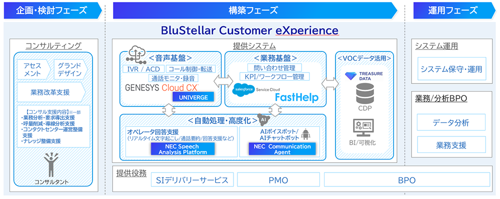NECは、コンタクトセンター業務におけるさまざまな課題解決に加え、コンタクトセンター業務で得た顧客情報を活用し、顧客体験変革やビジネス変革などの新たな価値実現をご支援します。