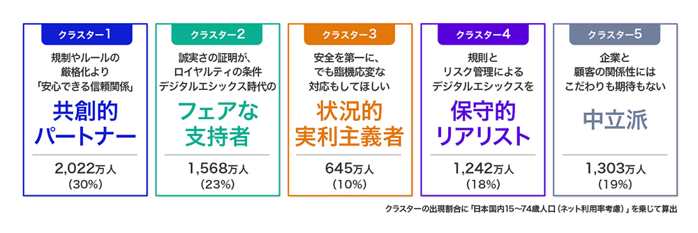 顧客の価値観は、企業との関係性に対する期待値によって、5つのタイプに分類されます。企業はこれらの多様な価値観と向き合い、対話を通じて「あるべき関係性」を顧客と構築することが、信頼獲得への鍵となります。