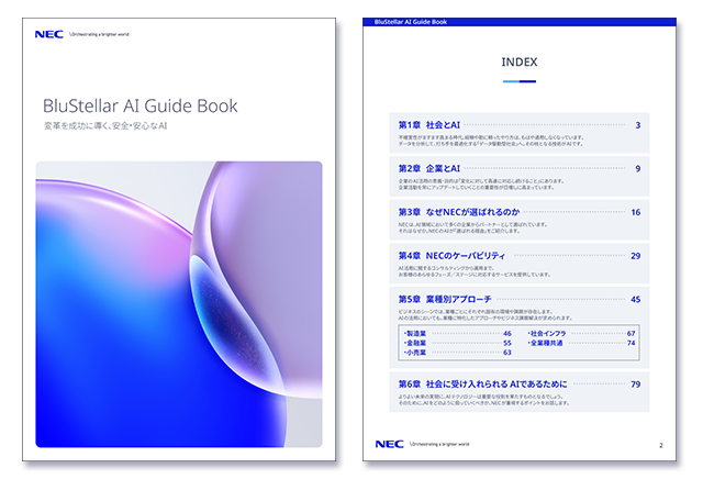 本ガイドブックでは、社会や企業が直面する課題を、AI活用によってどのように解決するのか、その考え方とNECの提供価値について、詳しくご紹介します。