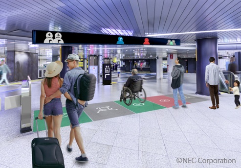 NECの高精度な顔認証と複数人同時認証が可能なSmart ID Expressを用いた顔認証改札です。