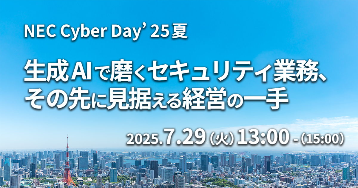 本イベントでは、 NECの実践事例をもとにセキュリティ業務の高度化・効率化と、次世代のセキュリティ経営戦略を探ります。