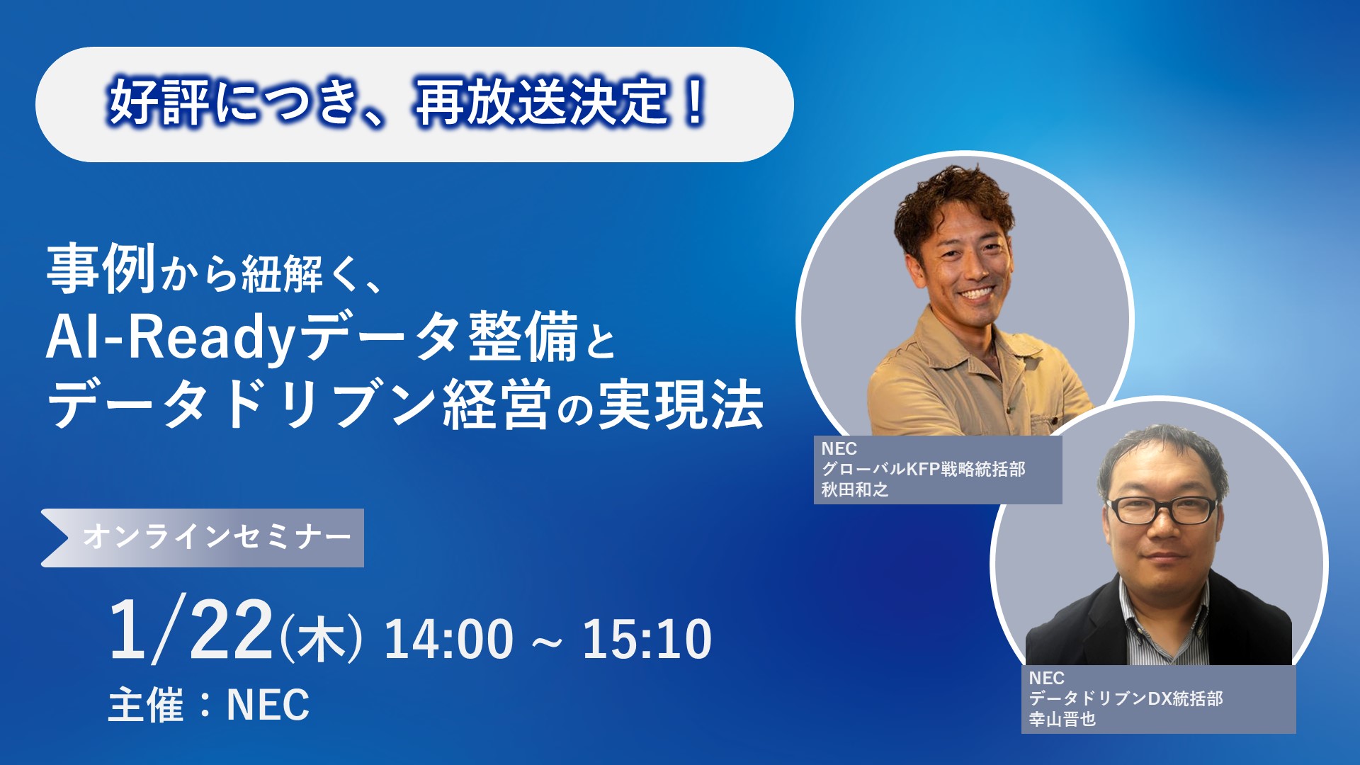 AI時代における競争力強化の鍵となる「データ活用」のヒントを、本セミナーでぜひお持ち帰りください。