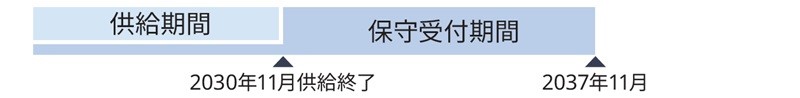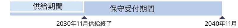 2030年11月まで供給を保証。保守受付期間(修理可能期間)は、購入時のフレームモデル選択により供給終了後7年間(標準モデル)、または10年間(保守受付期間延長モデル)が選択できます。