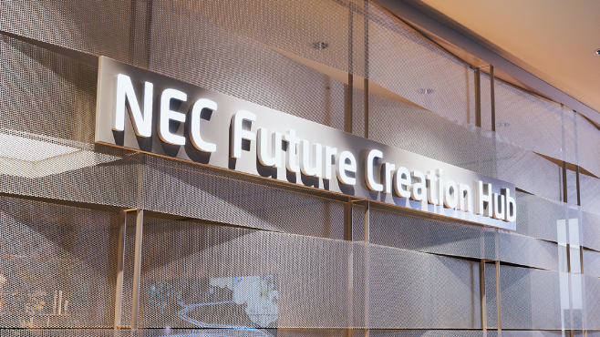 「NEC Future Creation Hub」は、テクノロジーとビジネスの融合を体感いただき、対話を重ねて、共に未来を描くカスタマーエクスペリエンスセンターです。テクノロジーの可能性、そこから生まれる価値、NECのビジョンを体験いただけます。世界中のお客様が一つのチームとなり、コラボレーションを通じて、次代の社会価値を創造していきます。