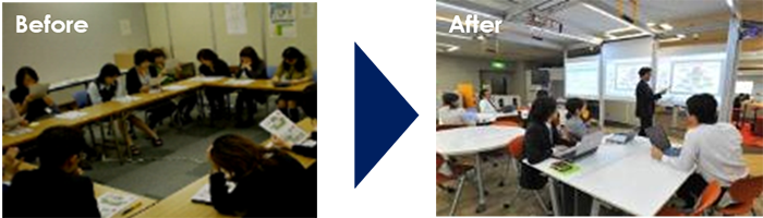執務エリアもフリーアドレス化、普段にはないコミュニケーションで新たなアイデアや着想も激増です!