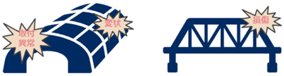路面異常、トンネルの変状や付属物の取付異常、橋梁の損傷(銅・コンクリート)を時系列で把握することで異常を早期に検出