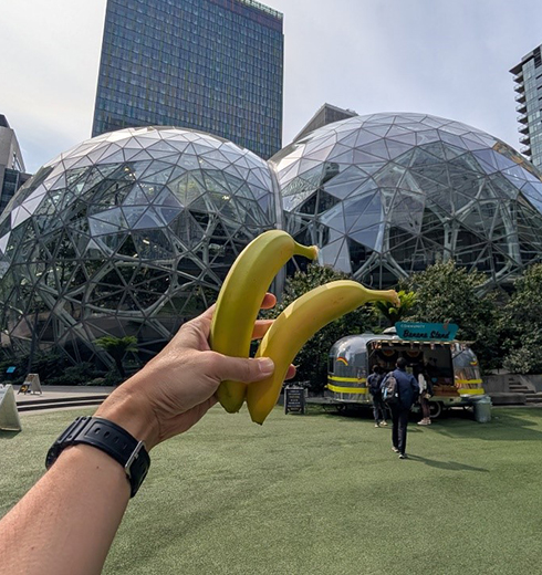 6月17日からのGlobal Summitを控え、前日の16日にはAmazon Spheresの見学会が行われました。Amazon Spheresは2018年に建設されたシアトル市内のAmazonオフィスです。ただのオフィスではなく、建物内にアマゾンのジャングルを思わせる木々や川、滝が再現されています。そのような環境の中に、カフェやデスク、ミーティングスペースなどが用意されているのがとても面白いです。オフィスであるため写真の公開は原則不可となっており、詳細について知りたい方はAmazonのHPを参照いただければと思います。