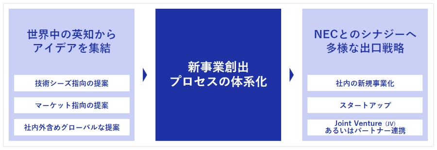 NECの先端技術と事業開発の知見を活かし、起業家と共に新たな価値を創出。短期間で社会にインパクトを与える革新的なプロダクト開発を支援します。