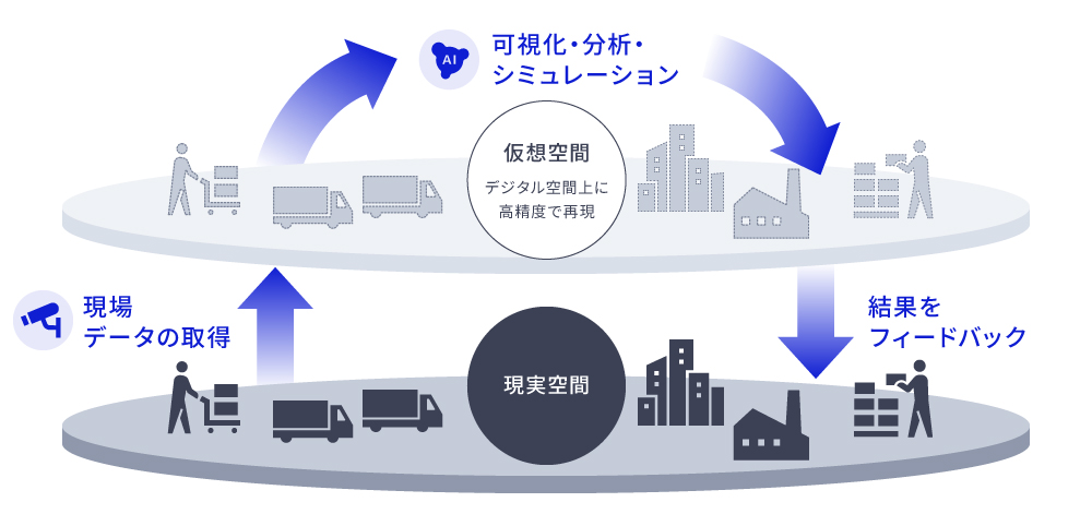 現実世界の物体や環境から収集したデータを仮想空間に再現。