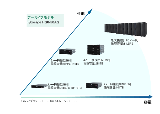 iStorage HSシリーズは、グリッド・ストレージ技術を活かし、テープバックアップの経済性とディスクバックアップの高性能を両立させた先進のバックアップ・アーカイブストレージです。