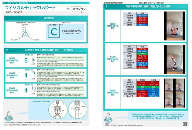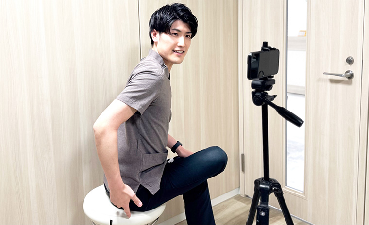 スマホで動作を撮影し、AIが姿勢・関節の動きの特徴を評価してレポート化します。課題に合わせて推奨エクササイズ(短尺動画)を提示し、日常での継続を支援します。