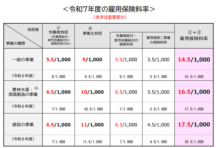 参考:厚生労働省「令和7年度の雇用保険料率について」
