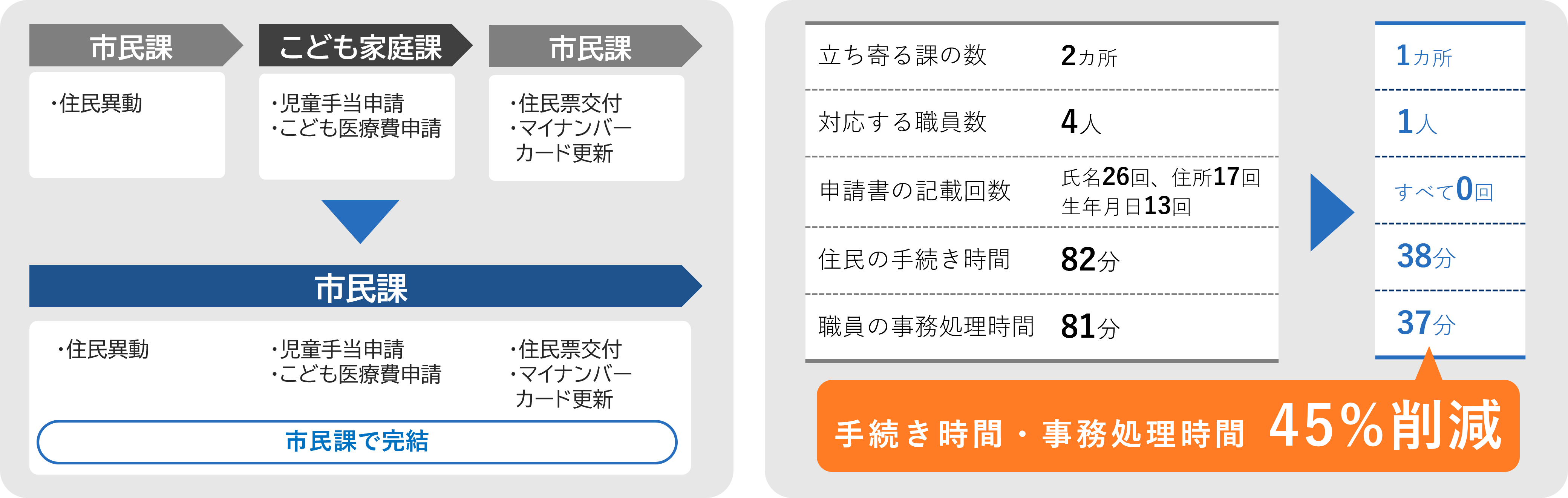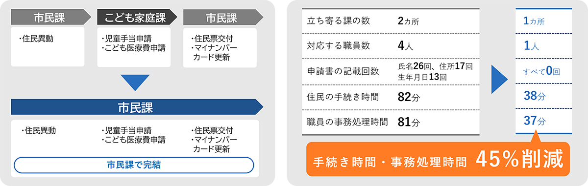 転入時の住民の手続き時間と職員の事務処理時間をそれぞれ45%削減