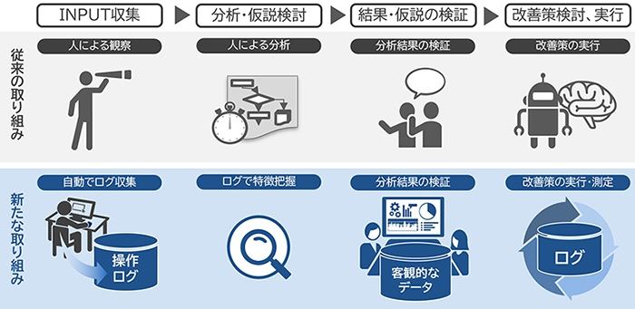 ログというデジタルデータをインプットとし、客観的なエビデンスに基づくデータ分析から業務改善検討を行います。庁内DX推進にかかせない改善サイクル確立を支援します。確立を支援します。