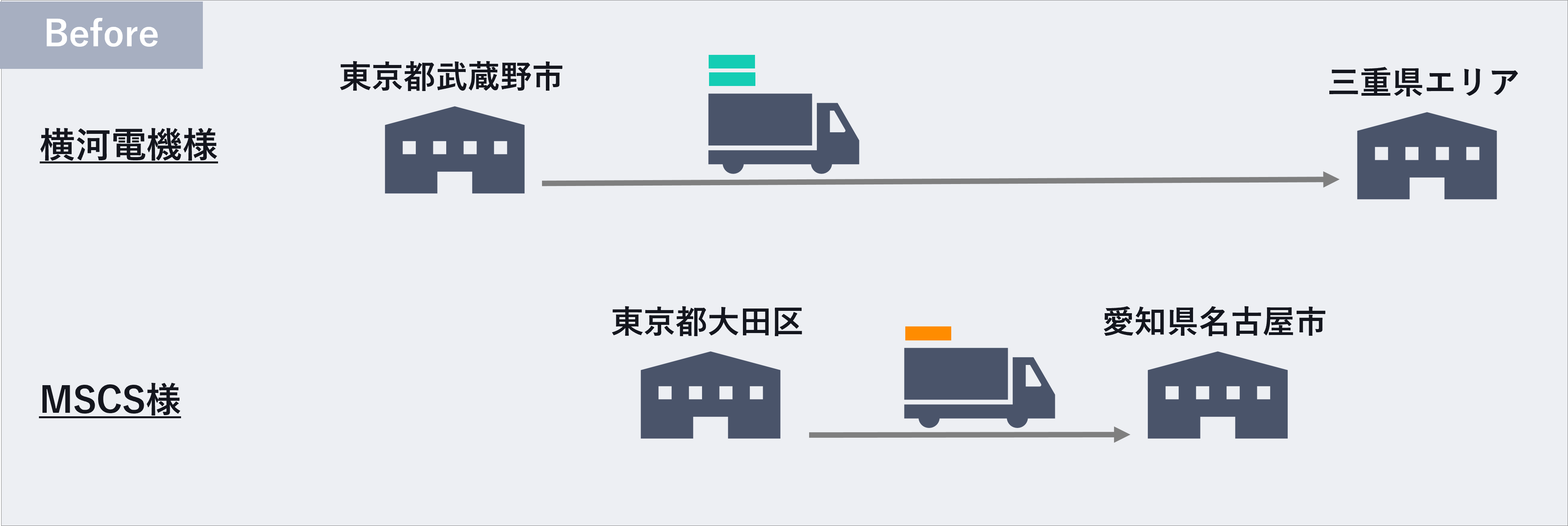 - 横河電機様:貸し切り便運用による積載率低下。