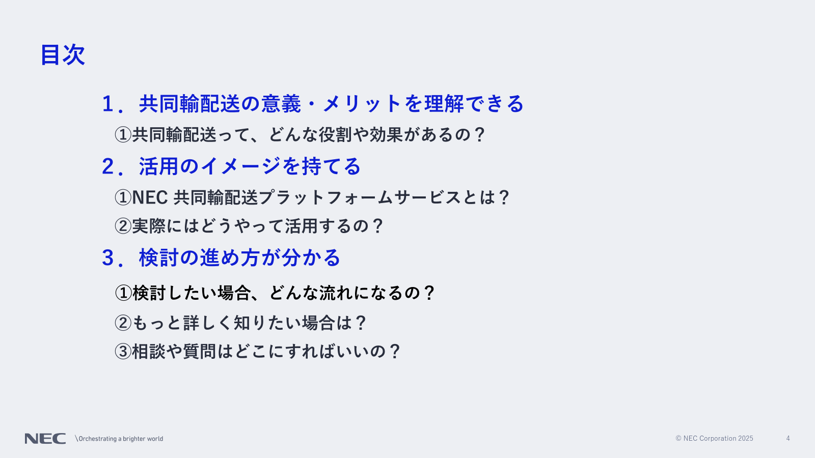 NECの共同輸配送プラットフォーム 3つのポイント