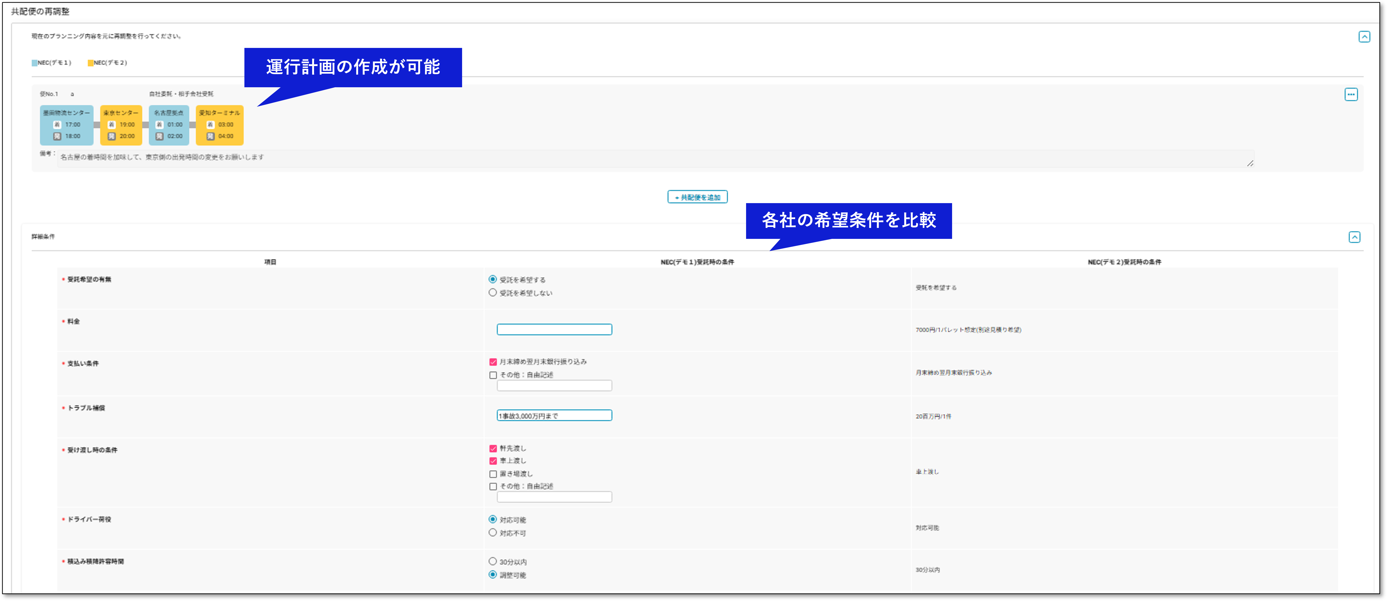 NECの共同輸配送プラットフォーム