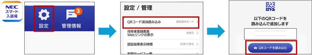 - Q「NECスマート入退場管理アプリ」でQRコードを読み込んだところ、「予期しないデバイスIDです」と表示されました。
