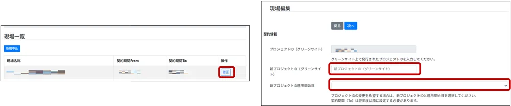 プロジェクトIDの切り替えは、毎年4月1日のみ有効となります。(2024年2月26日以降に作成した現場のみ可能)