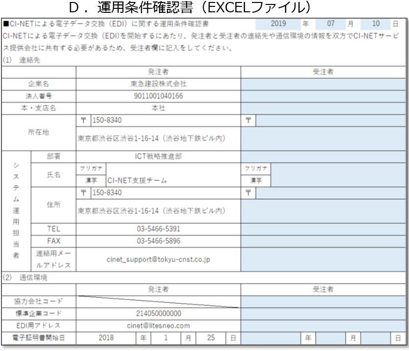 なお、既にCI-NETをご利用されている企業で、新たに東急建設様とのCI-NET取引を開始されたい場合は、