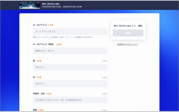 NEC SEIZO Laboをご利用いただくには、参加登録が必要となります。