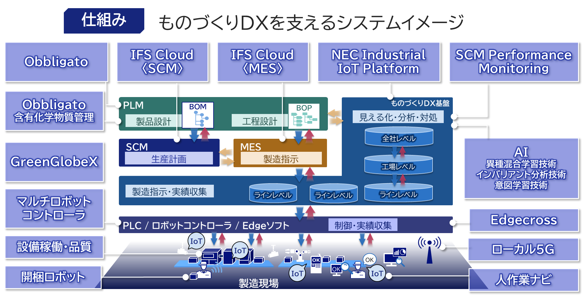 NECはお客様のものづくりDXを支える仕組みとなる各種ソリューションをご提供しております。