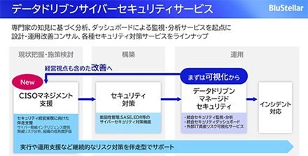 NECとNECセキュリティは、データ起点での継続的なセキュリティリスクマネジメントを支援する「データドリブンサイバーセキュリティサービス(注3)」を強化し、セキュリティ経営における課題解決を伴走型で支援する「CISOマネジメント支援サービス」を提供しています。