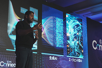続いての講演ではIFSテクノロジー部門 シニアバイスプレジデント(SVP) ヴァイブス クマール氏が登壇。蒸気機関が発明されてから長い年月を経たのち、産業革命において蒸気機関があらゆる産業で価値を提供する基盤となった事を例に挙げつつ、AIも同様に基盤でありIFSはこれを組み込んだプロダクトを提供し、お客様が価値を得るお手伝いをしたいと語りました。