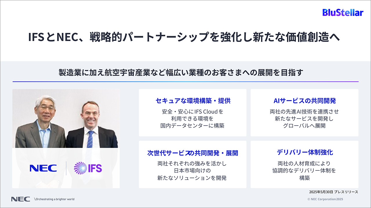 2025年5月30日IFSとNECは「戦略的パートナーシップの強化」をプレスリリースしました。