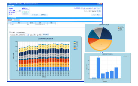棒グラフ、円グラフ等、複数種のグラフ選択が可能です。データを可視化し、分析に役立てることができます。