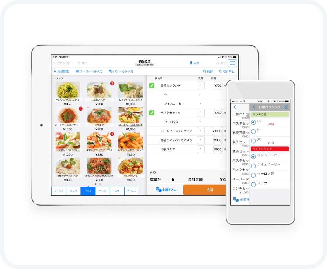 据え置き型POS市場で培った多店舗運営のノウハウをもとにさまざまな飲食店のご要望に柔軟にお応えできます。高機能で柔軟対応から多くの飲食事業者に選ばれています。
