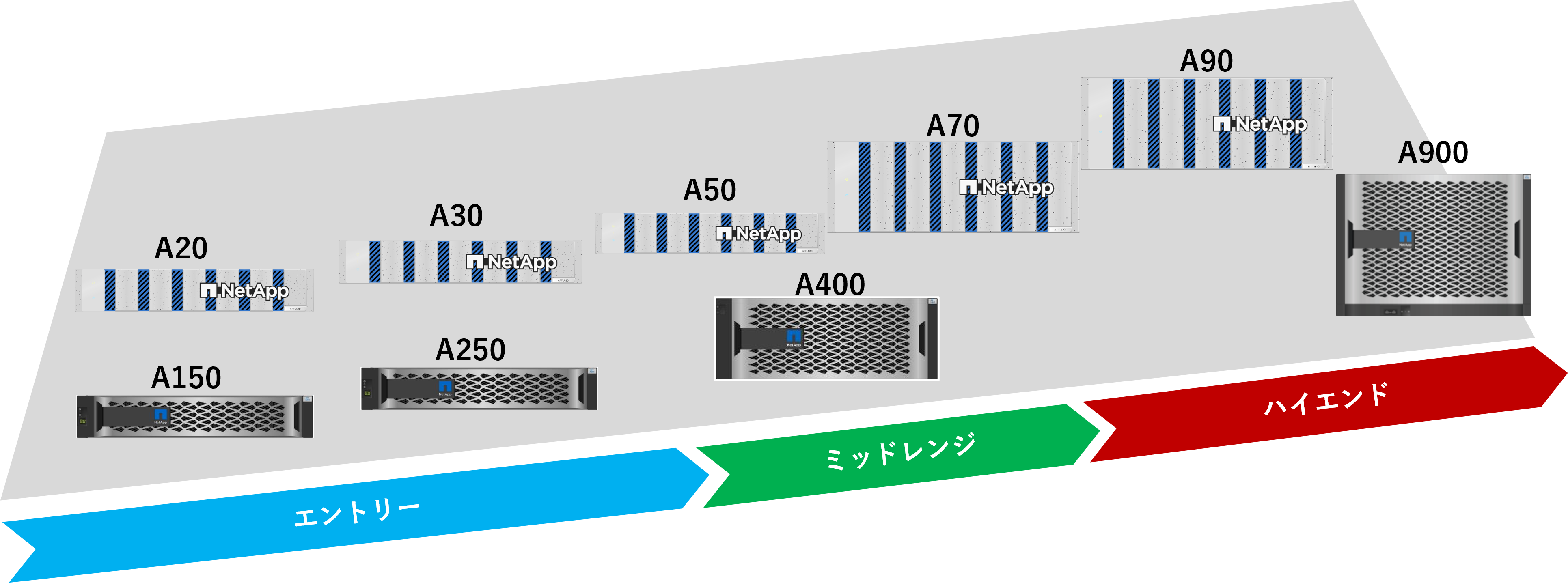 AFF Aシリーズは長年の実績をもつFASシリーズの充実したデータ サービス(優れたデータ保護や管理機能等)をそのままにデータ分析、人工知能(AI)、機械学習(ML)など、お客様のニーズに応えるハイパフォーマンスと低レイテンシ、そして低コストを実現した万能オールフラッシュストレージです。