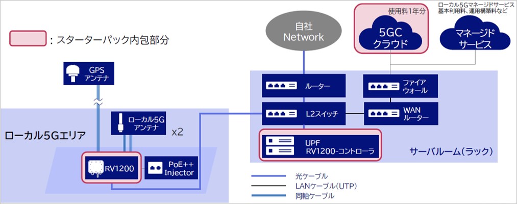 Sub6一体型基地局と5Gコアを組み合わせたスターターパックを498万円から提供します。