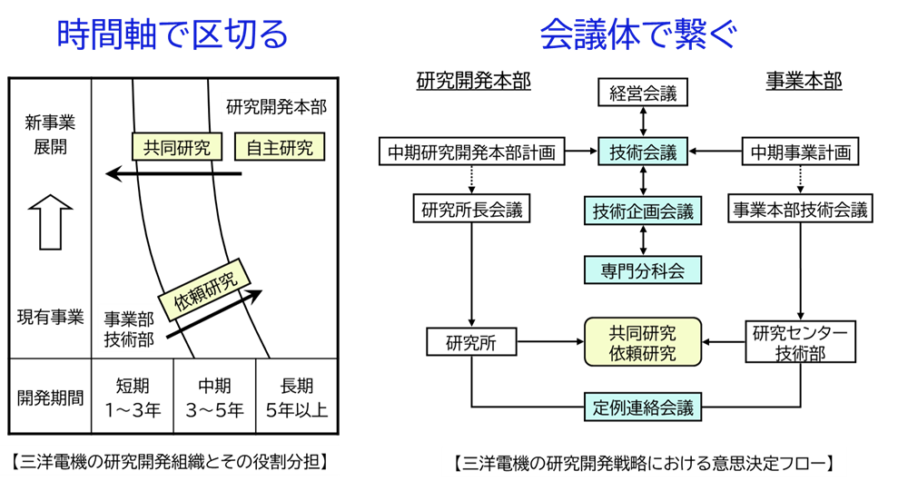 「R(研究)」も「D(開発)」もしっかりやっているのに、収益の高い製品や事業が生まれないのは、RとDがうまく連動していないのが課題であり、トップが関与する形での、全社的な課題再認識の下、部門の強化とミッションの明確化が必要、との指摘でした。