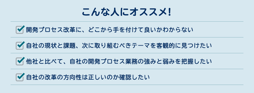 実績豊富なコンサルタントのノウハウをもとに貴社の「製品開発力」を診断します
