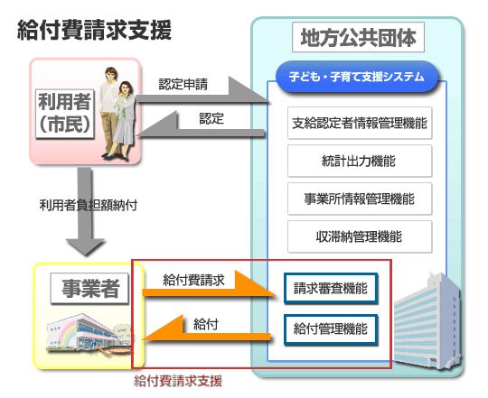子ども・子育て支援新制度では、給付金制度が導入されますが、保護者が確実に教育・保育に要する費用に充てるため、教育・保育を提供した事業者が代理で受領(法定代理受領)する仕組となっています。各地方公共団体では、給付対象の支給認定者情報や給付実績情報等を管理する「子ども・子育て支援システム」の導入を進めていますが、事業者から受領する給付費請求の管理については、全国共通のフォーマットなどの規定が設けられていません。