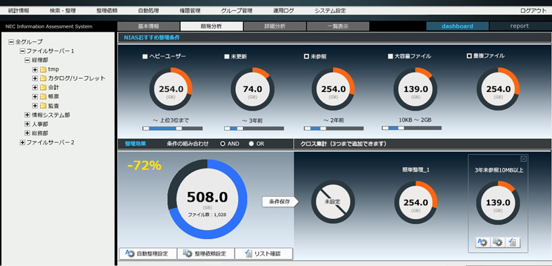 NECは、ファイルサーバ内の不要ファイルの検出や整理を支援するソフトウェア新製品「NEC Information Assessment System V3.1」(以下、NIAS V3.1)を、本日から発売します。