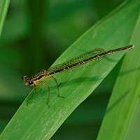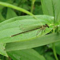 モノサシトンボに似るが、やや大きく黒みが強い。国内では本州の一部(関東地方と新潟県、宮城県)にのみ分布し、生息地は局限される。この分布パターンはオオセスジイトトンボと類似するが、東北地方北部には分布しない。生息地の人為的破壊により、近年著しく減少している。現在までに知られているのは、群馬、栃木、埼玉、東京、神奈川、千葉、茨城、新潟、宮城の9都県である。現存するのは24ヶ所のみである。(レッドデータブックより引用)