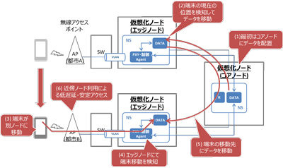ユーザの位置を検知して、データをユーザ近傍の仮想化ノードに事前に配置することで、応答性能の向上を図る技術の検証 |