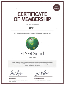 NEC、社会責任投資の世界的代表指標である「FTSE4Good Index Series」に14年連続で採用