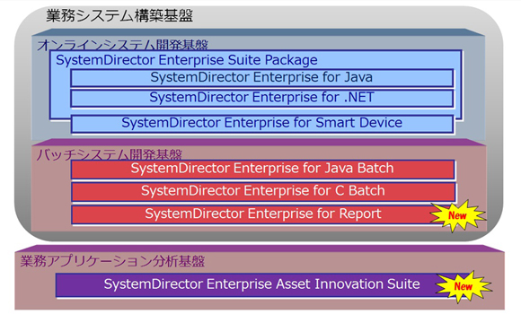 新製品は、ソースコードなどからシステム内の資産を可視化し、業務アプリケーション保守の効率化を支援する「SystemDirector Enterprise Asset Innovation Suite」と、設計書から帳票フォームとテスト用帳票データを自動生成し、帳票開発の効率化を実現する「SystemDirector Enterprise for Report」です。